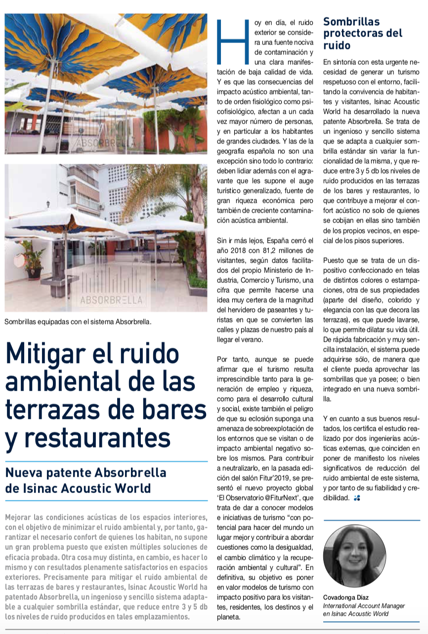 In the next link you can read the last articule of #ABSORBRELLA published in the #Secartys Magazine. https://www.secartys.org/wp-content/uploads/secartys-revista-empresarial-33.pdf captura-de-pantalla-2019-07-09-140918 #ABSORBRELLA #ISINAC #acousticcomfort #withoutnoise #turism #reverberation #FiturNext