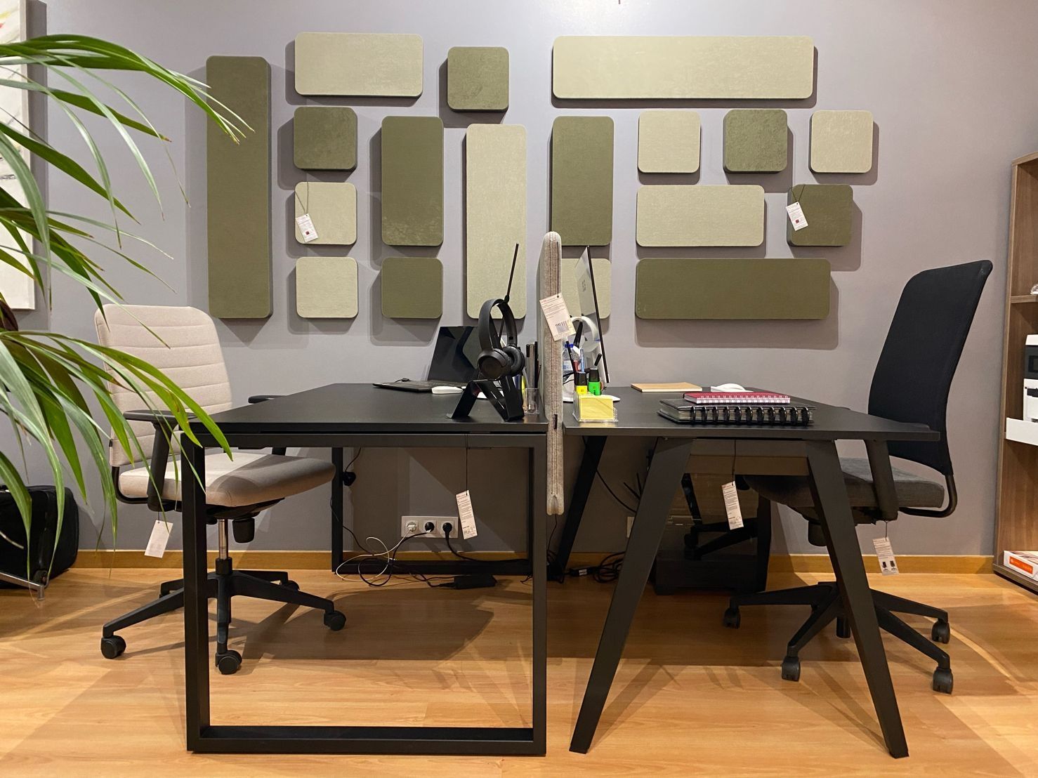 Por otro, nuestros #BIOMBOSACUSTICOS, confeccionados en tejidos de lana 100% compostable, con ruedas para que puedas moverlos sin problemas, y con un espacio de almacenamiento para tus cosas. Pero sobretodo con la máxima absorción acústica, para que tanto tus llamadas como #videoconoferencias fluyan sin ningún #eco o #ruido molesto.