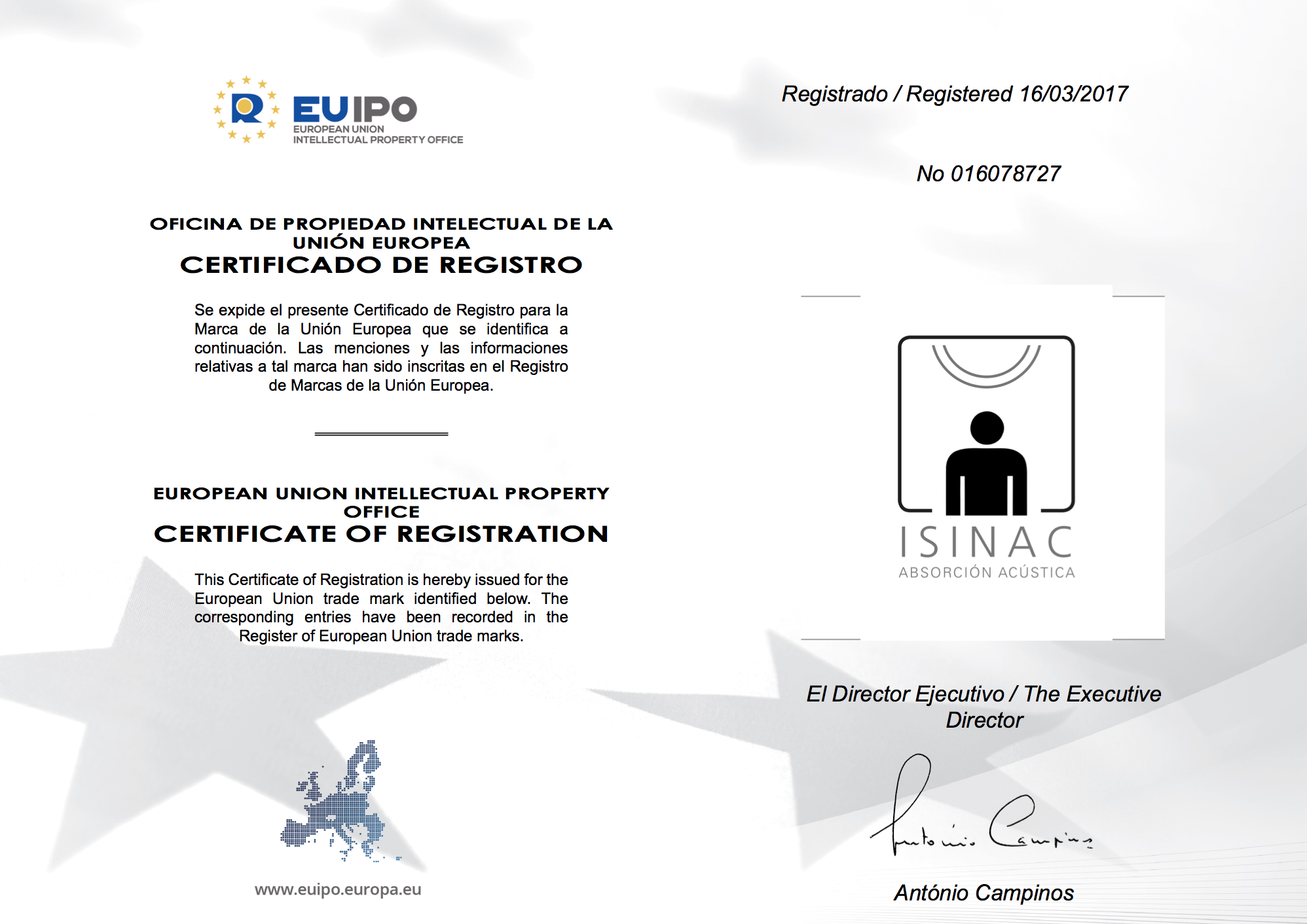ISINAC ya es marca de la Union Europea 2 abr 2017 Noticias ISINAC Absorción Acústica ya es marca de la Unión Europea, acabamos de ser nombrados Marca por la European Union Intellectual Property Office. Un nuevo paso para nuestras obras internacionales. Volver Volver